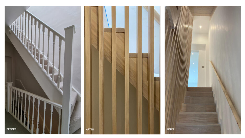 In one recent loft conversion, the new staircase presented a unique opportunity to rethink how movement connects the home. Instead of simply inserting access to the loft, our team designed a self-supporting timber structure that stands independently, rising through the core of the space like a sculptural spine. Its position was carefully determined to optimise headroom, circulation flow and structural performance. The staircase was engineered to remain visually lightweight while being structurally robust, using discreet anchoring only at the floor plates. From there, our joiners handcrafted the continuous handrail, smoothing the timber through layers of shaping, sanding and finishing until it felt like a natural, tactile extension of the architecture. The design strikes a quiet balance — refined, modern and minimal, yet subtly rooted in London’s architectural character through warm timber tones and soft contours.